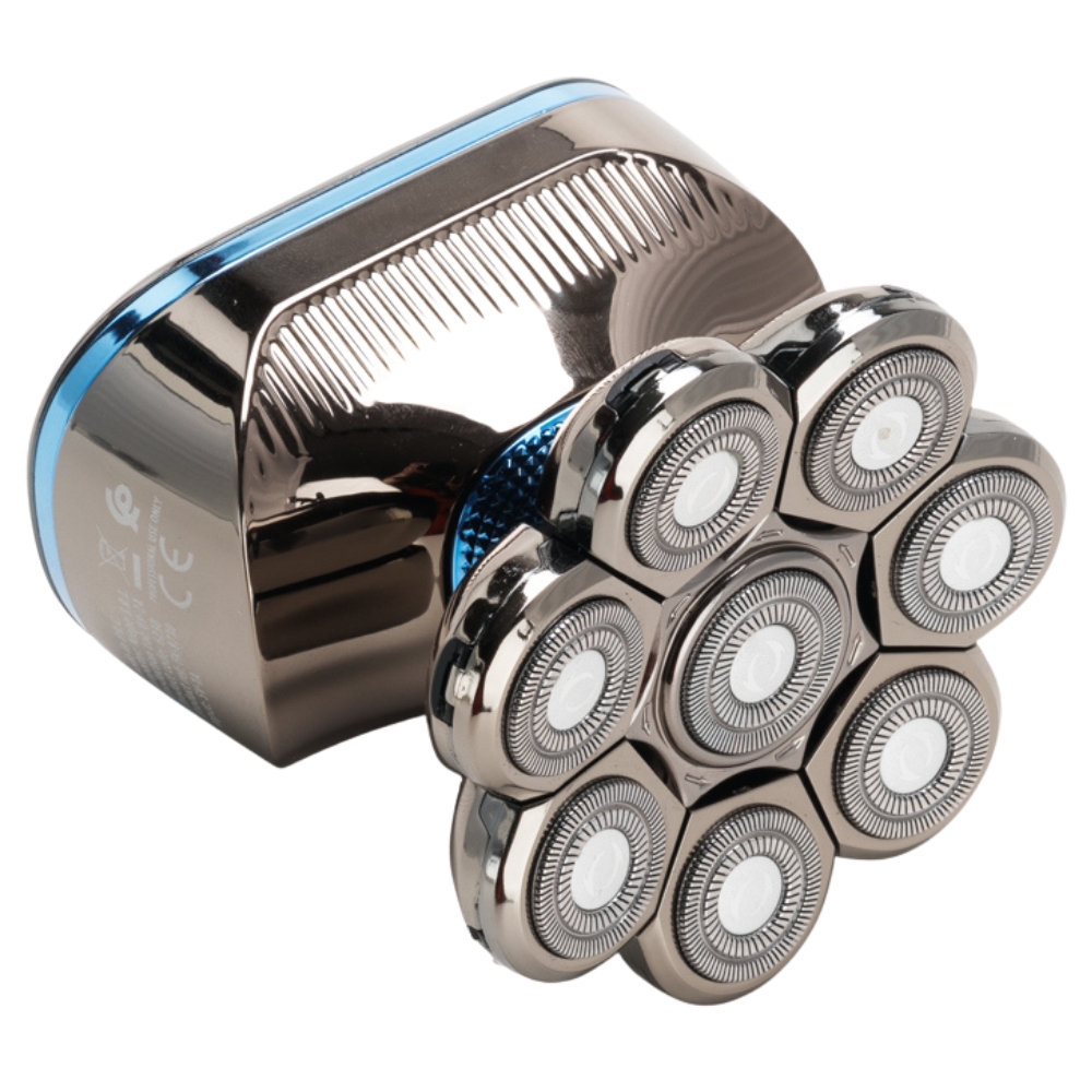 Questo rasoio è dotato di 8 testine rotanti e flessibili che si adattano perfettamente alle curve e ai contorni del cuoio capelluto.